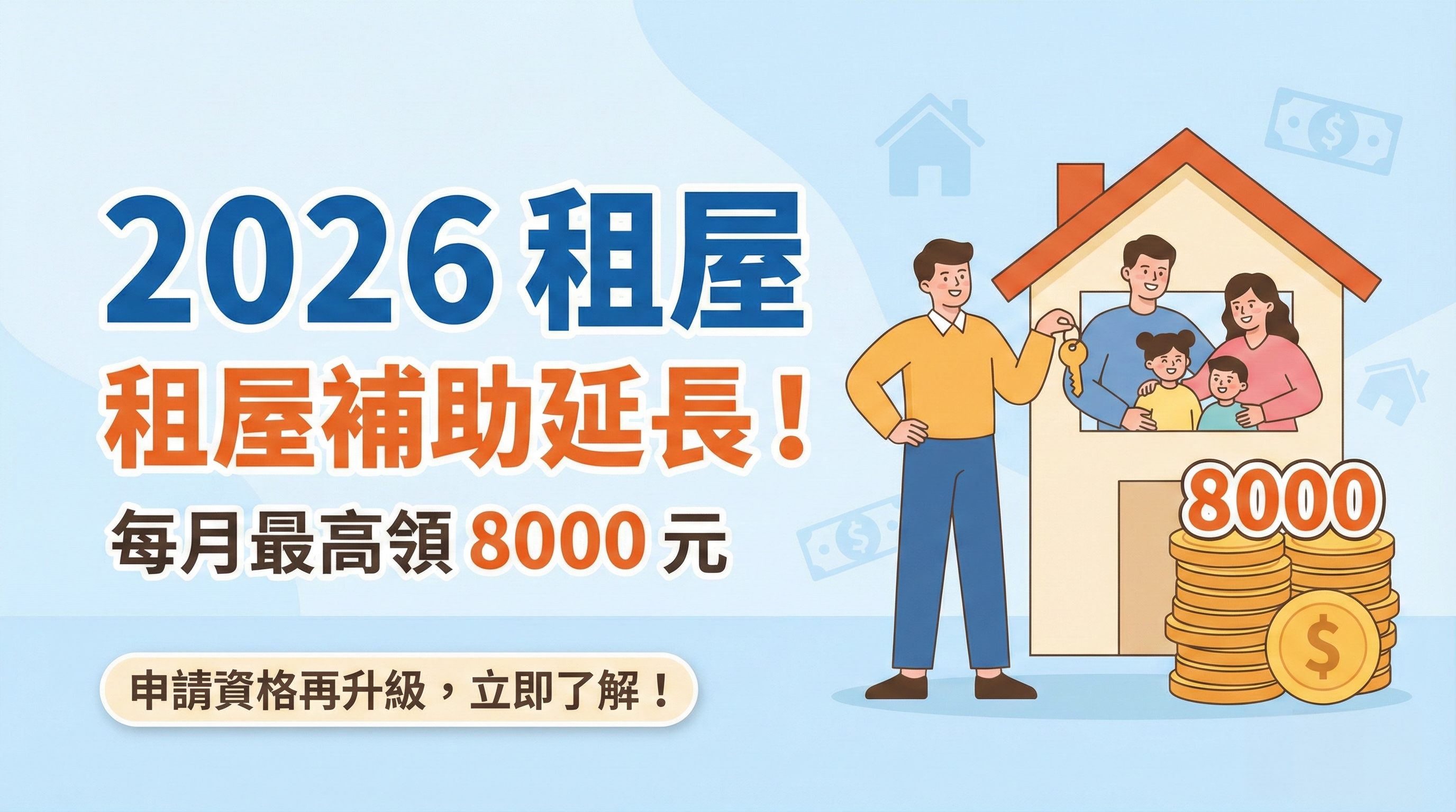 行政院拍板 300 億租金補貼延長至 2026 年!單身青年、新婚家庭加碼多少?房東轉作「公益出租人」享 1.5 萬免稅額划算嗎?資深不動產顧問為您解析申請資格、各縣市額度與稅務試算,免房東同意即可申請。