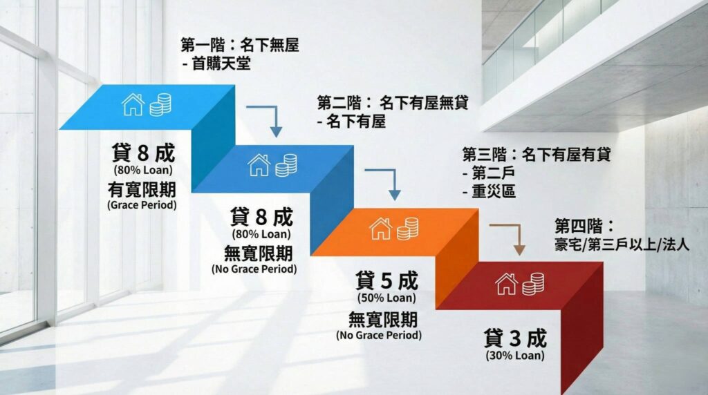 | 豪宅貸款 (高價宅) | 上限 4 成 | 上限 3 成 | 🔥 |