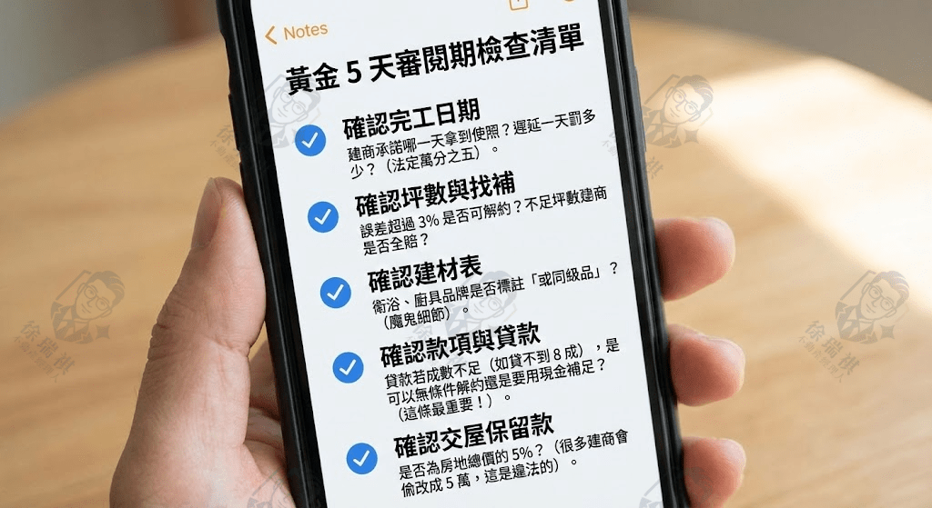 給了您 5 天,不是讓您把合約書供在桌上發呆的。這 5 天是您資產保衛戰的黃金時間。請務必依照以下清單逐一檢查:
